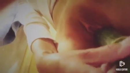 Бесспорно красивая пизденка показана крупным планом не просто так. Ее извращенная хозяйка где-то в интернете на форуме онанисток вычитала, что можно испытывать оргазм от подручных предметов, в том числе и продолговатых овощей. Действительно, если натянуть резинку сверху, подобрать нужный размерчик, то он неплохо заменяет мужской половой орган, предназначенный, в том числе, для удовлетворения похотливых девиц, типа этой. Не понятно как там на счет оргазма, но определенное удовольствие девушка получила, засняв на память первую попытку дрокнуть молоденькую пизденку огурчиком.