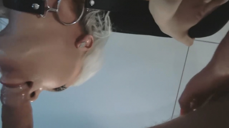 Две подружки разной национальности сидят на корточках, повернувшись лицами друг к другу - они слегка касаются язычками. Вдруг обе поворачивают голову когда в кадре образовывается член, сходу попавший в глотку светловолосой и следом азиатке. У девок на руках за спиной бдсм наручники, а во рту специальный расширитель, они не должны касаться зубами ствола. Из обоих ртов капает слюна на сиськи, потом на друг друга, опытным горловым рабыням дали минутку отдохнуть, хозяин чуть-чуть потрахал блонду раком, продолжив издеваться над их глотками. Дабы не обижать ни одну из прелестниц, тип кончил одновременно обеим на лицо.