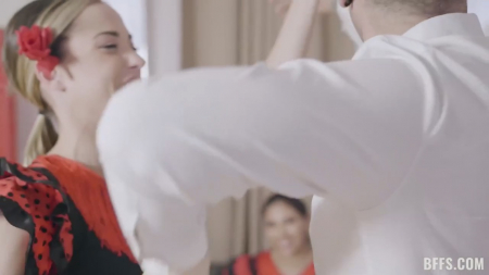Включив телефон на запись, заводная девчонка приняла в гости еще двух подруг, для которых приготовила забавные платьица. Они оказались слишком длинные, пришлось укоротить до попок для сопутствующего танца. Стало понятно, что они совсем не тренировались дома. На помощь пришел один опытный парень, преподавший пару уроков фламенко. После зажигательных движений даже ноги завоняли, а латинские чикули предложили ему помочь отдохнуть, уложив себе на коленки его тело, пока хозяйка стягивает с него штаны чтобы отсосать. Остальные не остались в стороне - тоже сделали приятно ротиками. На выбор у танцора сразу три раскрепощенных пещерки, не сомневайтесь, засадил он в каждую не по одному разу.