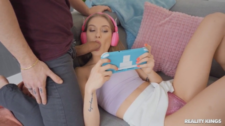 Видео сразу можно назвать полным извращением, так как девушка играет с геймпада в шутер на консоли ps4 fat. Ну это ли не пиздец! Почти коричневый бойфренд снова вечером стал приставать к раскосой сожительнице, лапать ее сиськи, всячески действиями намекать на потрахаться с его BBC, а та не отрывала взгляд в очках от экрана. Благо удалось ее возбудить и трахнуть вагинально рачком, хотя кроха еще успела сыграть военную катку, приняв спермы в рот, а потом, скорее всего, продолжив шпилить в игрушки.