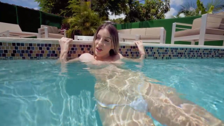 Удивленная наличию водонепроницаемости телефона чикуля позвала своего приятеля, чтобы он сделал пару фоток и видео ее сисек из-под воды. Тот не раздумывая согласился, только переоделся в более подходящее. Увлекаясь все сильнее и сильнее, подружка сняла с себя лифчик, попросив поснимать в бассейне ее пирсингованные соски и как забавно они всплывают. Когда ребята вылезли, девка еще попросила об одной маленькой услуге - помочь втереть крем против загара, а когда увидела стояк расставшегося с девушкой бритоголового чувака, предложила ему отплатить хорошей монетой: она взяла его шляпу за щеку, утащив в дом трахаться анально.