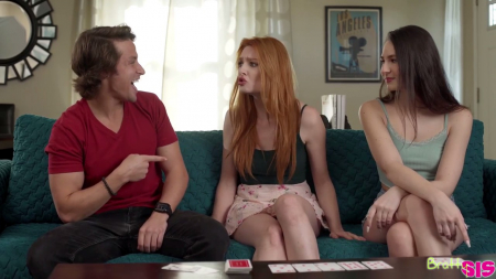 Девчонки играли в карты и когда пришел брат рыженькой, та была не сильно довольна и попыталась его отправить обратно к себе в комнату, но подружка настояла, чтобы он присоединился, понимая, что сейчас обыграет этих двоих. Сперва "Саймон" приказал потрогать себя за голову, потом вывалить свои прелести наружу, а потом и вовсе снять штаны, начав себя ласкать. Самым неожиданным желанием гостьи стало, чтобы брат вошел в сестру, а когда это все случилось, то и сама темноволосая пошлая дрянь присоединилась к общему веселью, ведь ей парень нравился, как и сама знакомая недотраханка.