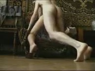 Ребята решили посмотреть на трахающихся себя со стороны, а лучший способ для этого снять любительский фильмец. Именно так и поступили похотливые развратники - установили в комнате камеру и приступили к удовлетворению физической потребности. Начали молодые люди с кресла качалки, но на этом не остановились - и на полу попробовали (милаха как раз рачком стояла), после на тумбе, в кресле и на диване. Сисястая блонда была хорошенько выебана в разных позах, но в целом половой акт доставил удовольствие обоим.