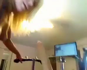 Эта сексуальная выдумщица придумала очень оригинальное занятие спортом. Девушка присоединила резиновый член к сиденью велотренажера и начала заниматься. Девушка садится на член и стонет от удовольствия. К тому же блондинка сняла себя на любительскую видеокамеру.